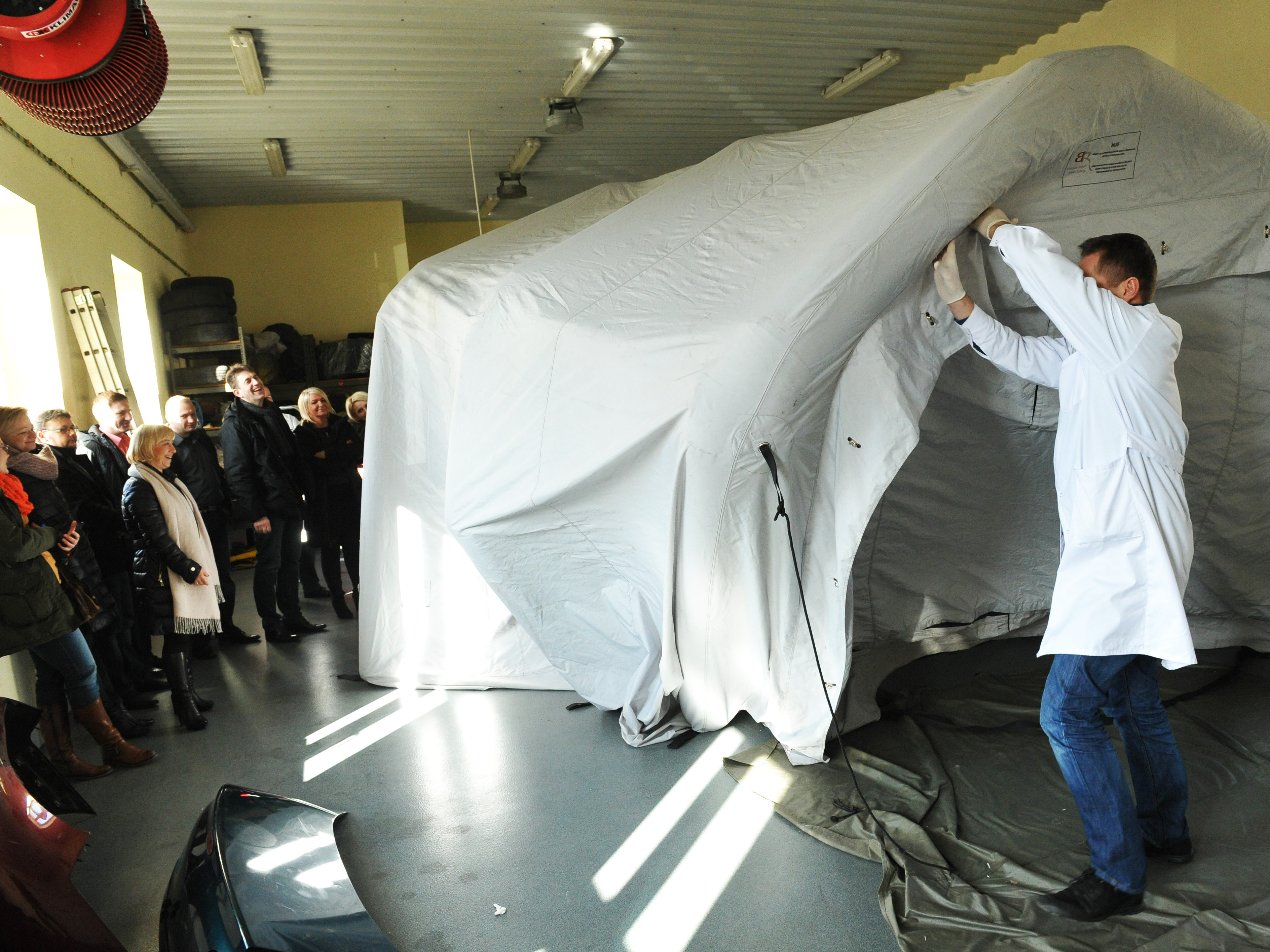 Przeprowadzenie walidacji w warunkach rzeczywistych wynikało z wymagań stawianych przez Narodowe Centrum Badań i Rozwoju finansujące powyższy projekt. Proces ujawniania śladów linii papilarnych na przedmiotach dużogabarytowych w specjalistycznym namiocie przeprowadzili biegli z zakresu badań daktyloskopijnych LK KWP zs. w Radomiu.