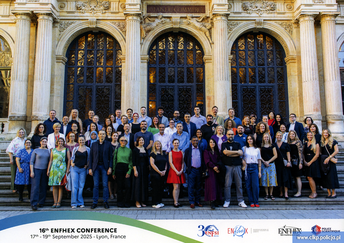 Od 16 do 19 września 2025 r. w Lyonie odbyła się 16. Konferencja ENFHEX – Europejskiej Sieci zrzeszającej ekspertów zajmujących się kryminalistycznymi badaniami pisma ręcznego. W wydarzeniu udział wzięli specjaliści z całego świata, w tym przedstawicielka Centralnego Laboratorium Kryminalistycznego Policji, które od wielu lat aktywnie uczestniczy w pracach tej grupy roboczej.