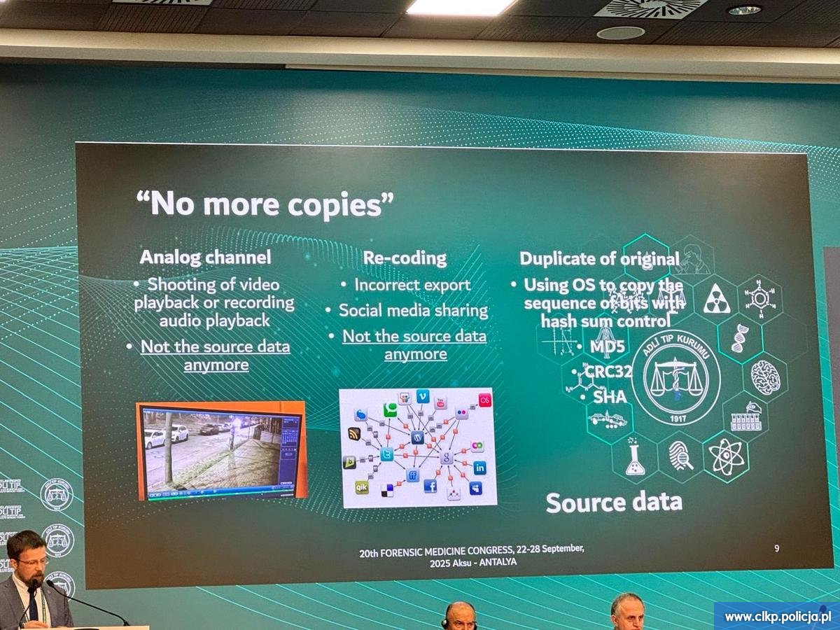 Tematyka tegorocznej edycji obejmowała m.in. badania biologiczne, genetykę sądową, oględziny poważnych miejsc zdarzeń i katastrof, techniczne i klasyczne badania dokumentów, badania cyfrowych nośników danych, badania deepfake stosowanych w wizerunkach twarzy, wykorzystywania sztucznej inteligencji w badaniach fonoskopijnych, badania toksykologiczne, zagadnienia prawno-kryminalistyczne, zapewnienie jakości badań. Podinsp. dr Anna Przewor wygłosiła prezentację na temat metody stosowanej w badaniach elektronicznych podpisów biometrycznych (Biometric Signature – Innovation in Forensic Sciences), natomiast Agnieszka Łukomska omówiła funkcjonowanie Zespołu DVI w polskiej Policji oraz doświadczenia pozyskane w wyniku przeprowadzonych ćwiczeń (Identification of Disaster Victims: Polish Experience). Obie prezentacje przyciągnęły uwagę uczestników i pozwoliły na nawiązanie nowych kontaktów roboczych.