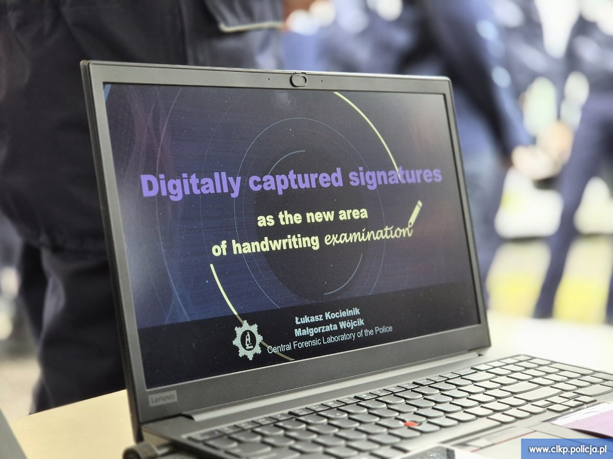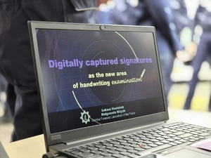 Przedstawiciele CLKP zaprezentowali działalność Laboratorium, w tym nowoczesne rozwiązania stosowane w badaniach kryminalistycznych, m.in. możliwości analizy elektronicznych podpisów biometrycznych oraz inne metody wykorzystywane w badaniach dokumentów.