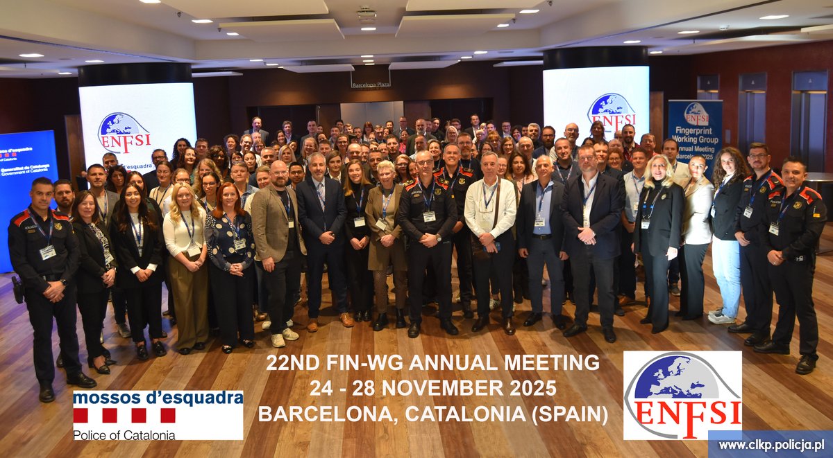 W dniach 27–28 listopada 2025 roku w Barcelonie odbyło się 22. posiedzenie Grupy Roboczej ENFSI ds. Badań Daktyloskopijnych (Fingerprint Working Group). Gospodarzem wydarzenia była Policja Katalonii – Mossos d’Esquadra.