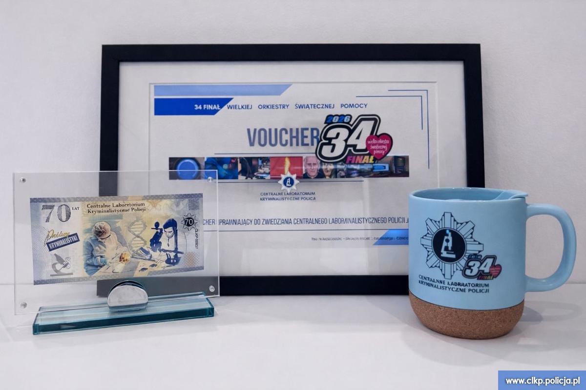 Celem tegorocznego 34. Finału Wielkiej Orkiestry Świątecznej Pomocy jest zebranie środków na diagnostykę i leczenie chorób przewodu pokarmowego u najmłodszych pacjentów. Centralne Laboratorium Kryminalistyczne Policji włącza się w charytatywną akcję WOŚP przekazując na aukcję kolekcjonerski walor pieniężny o charakterze okolicznościowym, wydane na potrzeby CLKP wytworzony przez Polską Wytwórnie Papierów Wartościowych, kubek oraz voucher uprawniający do zwiedzania Centralnego Laboratorium Kryminalistycznego Policji: "Gramy z hasłem „Zdrowe brzuszki naszych dzieci”. Przedmioty nie są dostępne w sprzedaży.