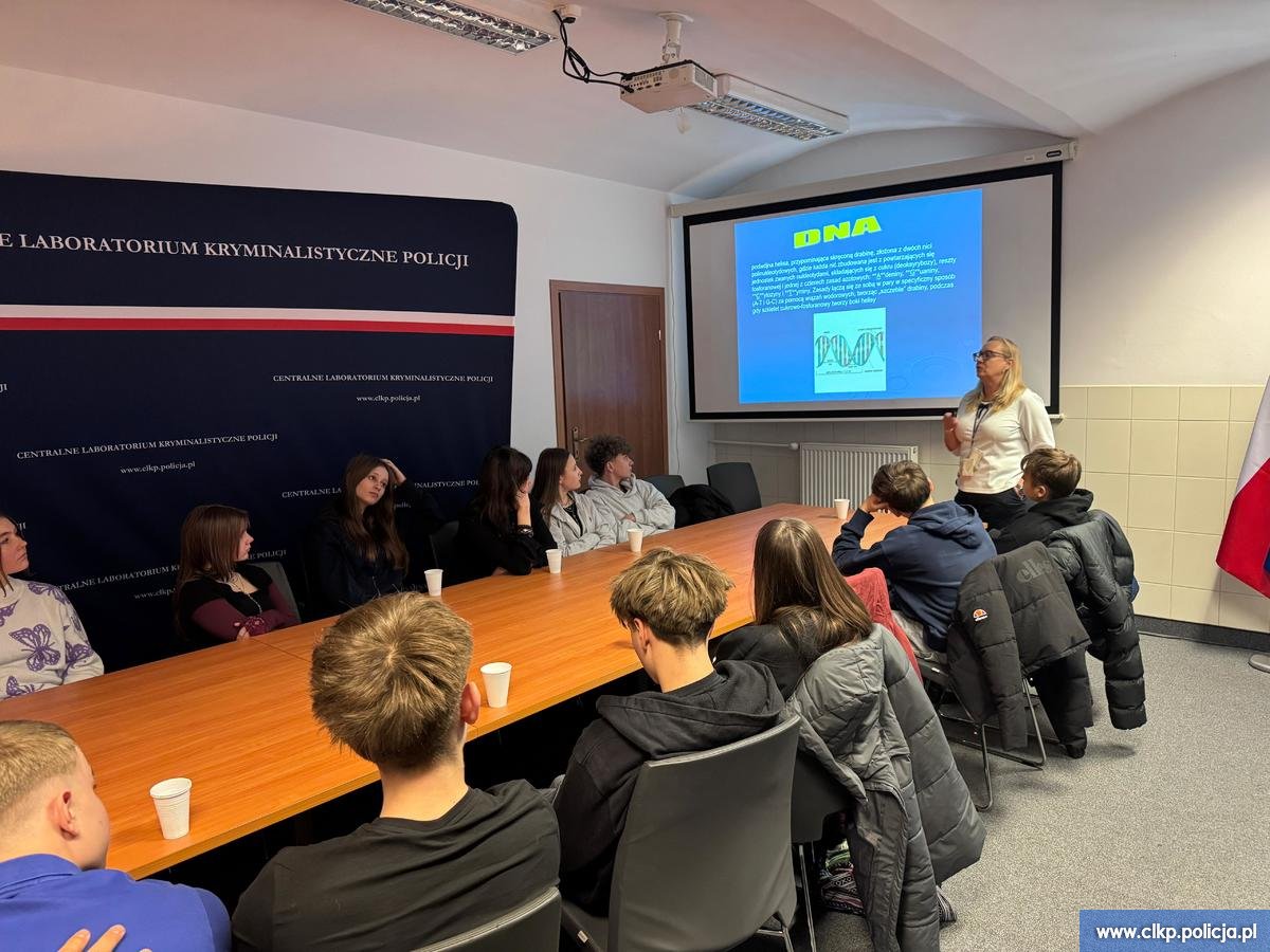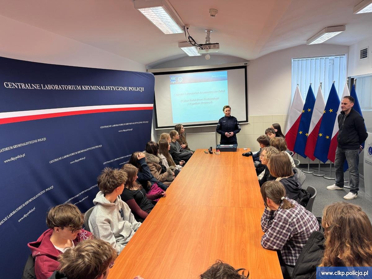 Młodzież została powitana przez Zastępcę Dyrektora Centralnego Laboratorium Kryminalistycznego Policji mł. insp. dr Annę Przewor, która przybliżyła uczniom zakres działalności CLKP oraz rolę laboratorium w systemie bezpieczeństwa. Podczas krótkiego wystąpienia omówiła zadania realizowane przez policyjnych biegłych oraz znaczenie nowoczesnych metod badawczych wykorzystywanych w procesie wykrywania i zwalczania przestępczości.