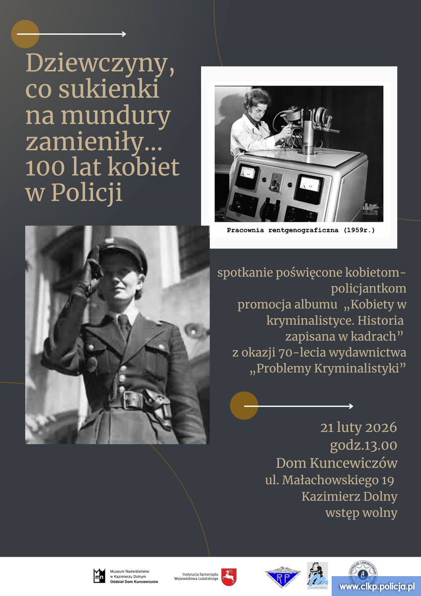21 lutego w Domu Kuncewiczów w Kazimierzu Dolnym odbyło się spotkanie poświęcone historii oraz współczesnej roli kobiet w Policji. Wydarzenie wpisywało się w obchody 100-lecia służby kobiet w Policji oraz 70-lecia kwartalnika „Problemy Kryminalistyki”.